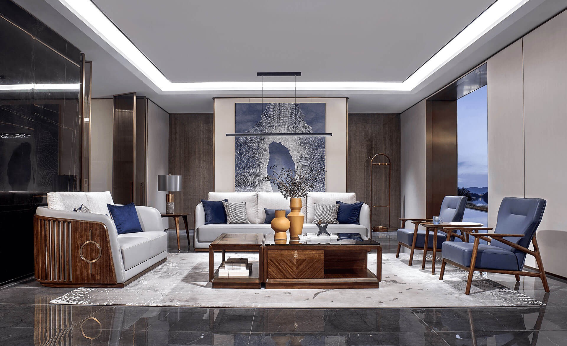 舒適+高雅+精致,布藝的舒適,真皮的高雅,實木工藝的精致