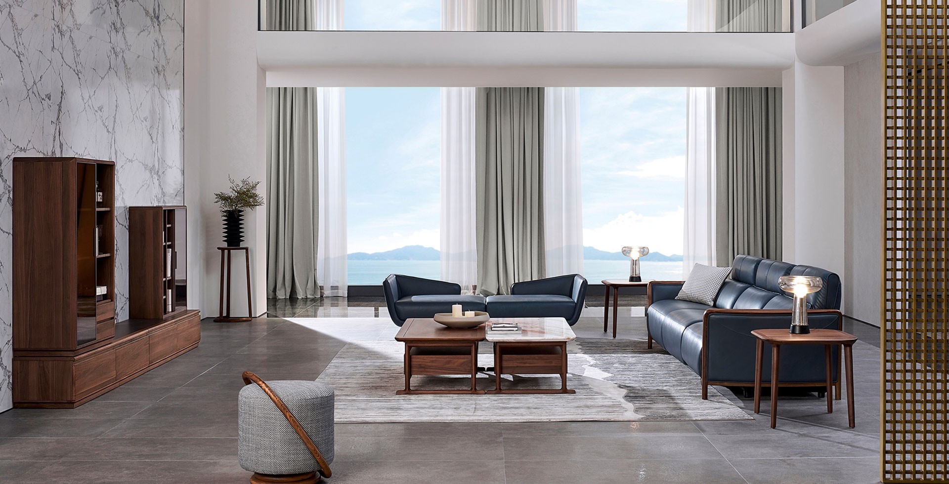 整個空間以深海藍為主色調